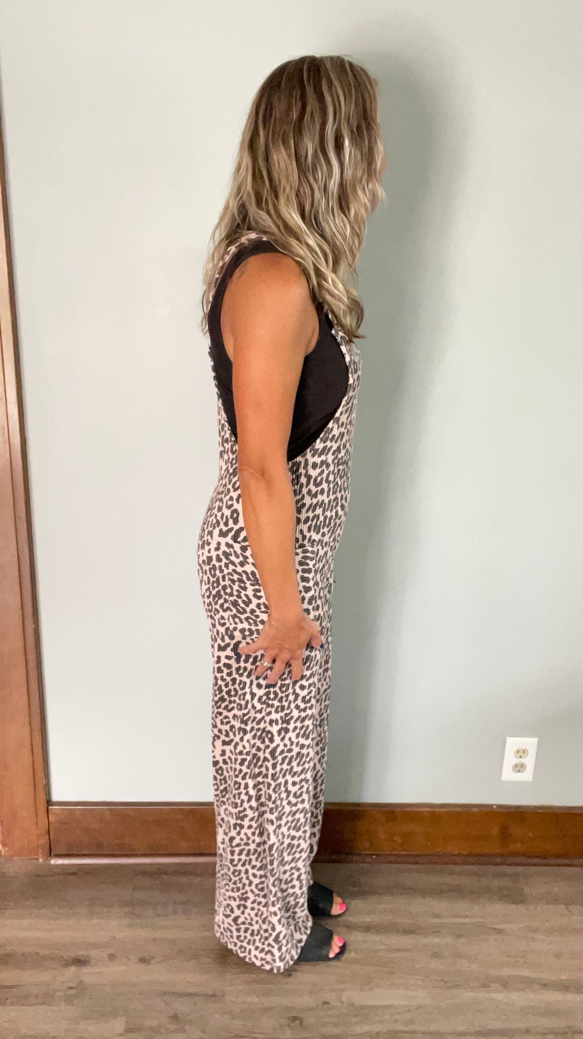Make a statement with this chic animal print jumpsuit! Designed in a soft ribbed knit with a wide-leg fit, it combines comfort and confidence in the best way. The neutral coco + black leopard print keeps it trendy yet versatile, while the overall-style straps and pockets give it that casual, laid-back vibe.