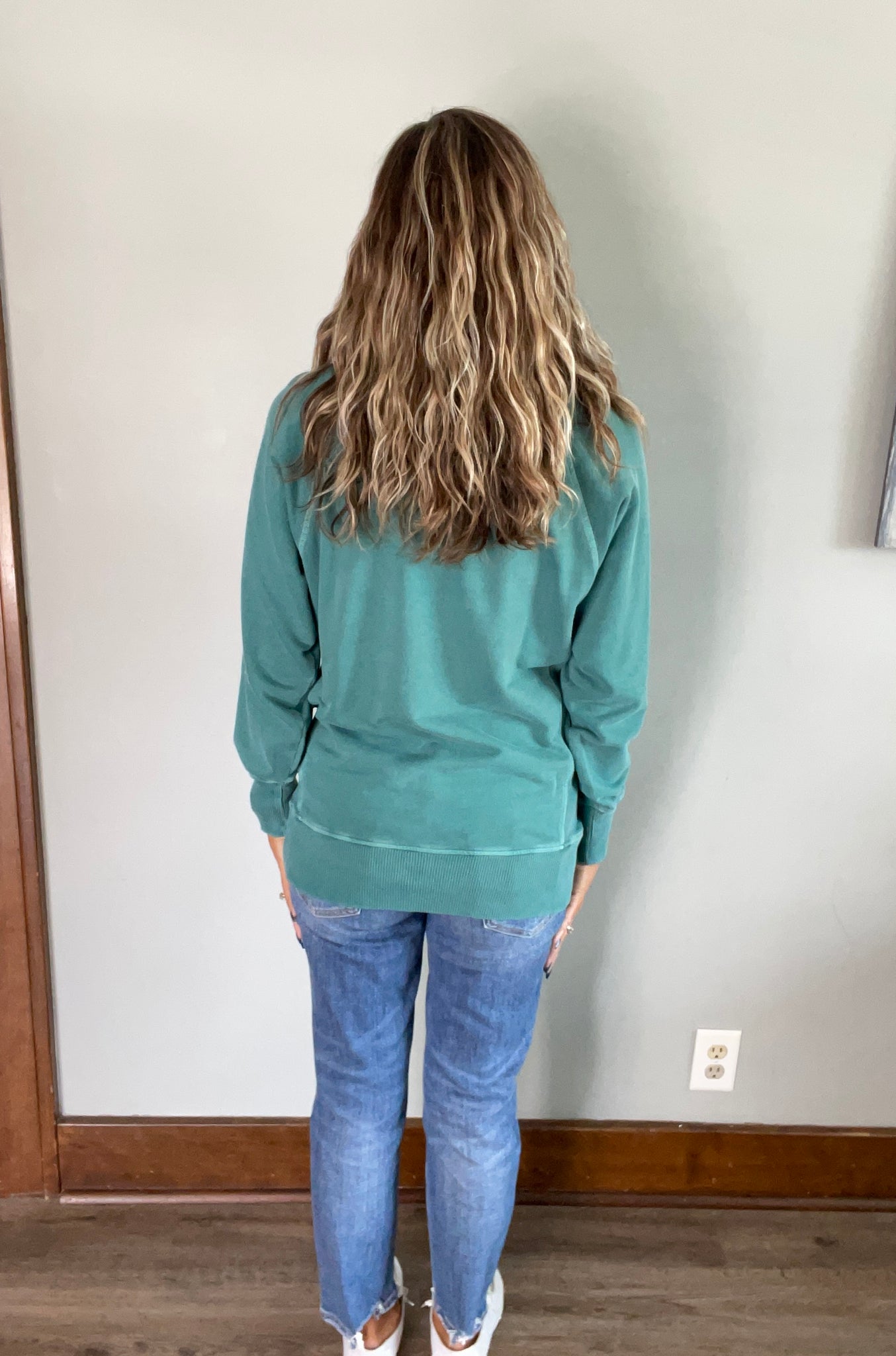 The gorgeous teal shade makes this pullover a standout choice for year-round wear — pair it with jeans for a casual look or leggings for a laid-back vibe.