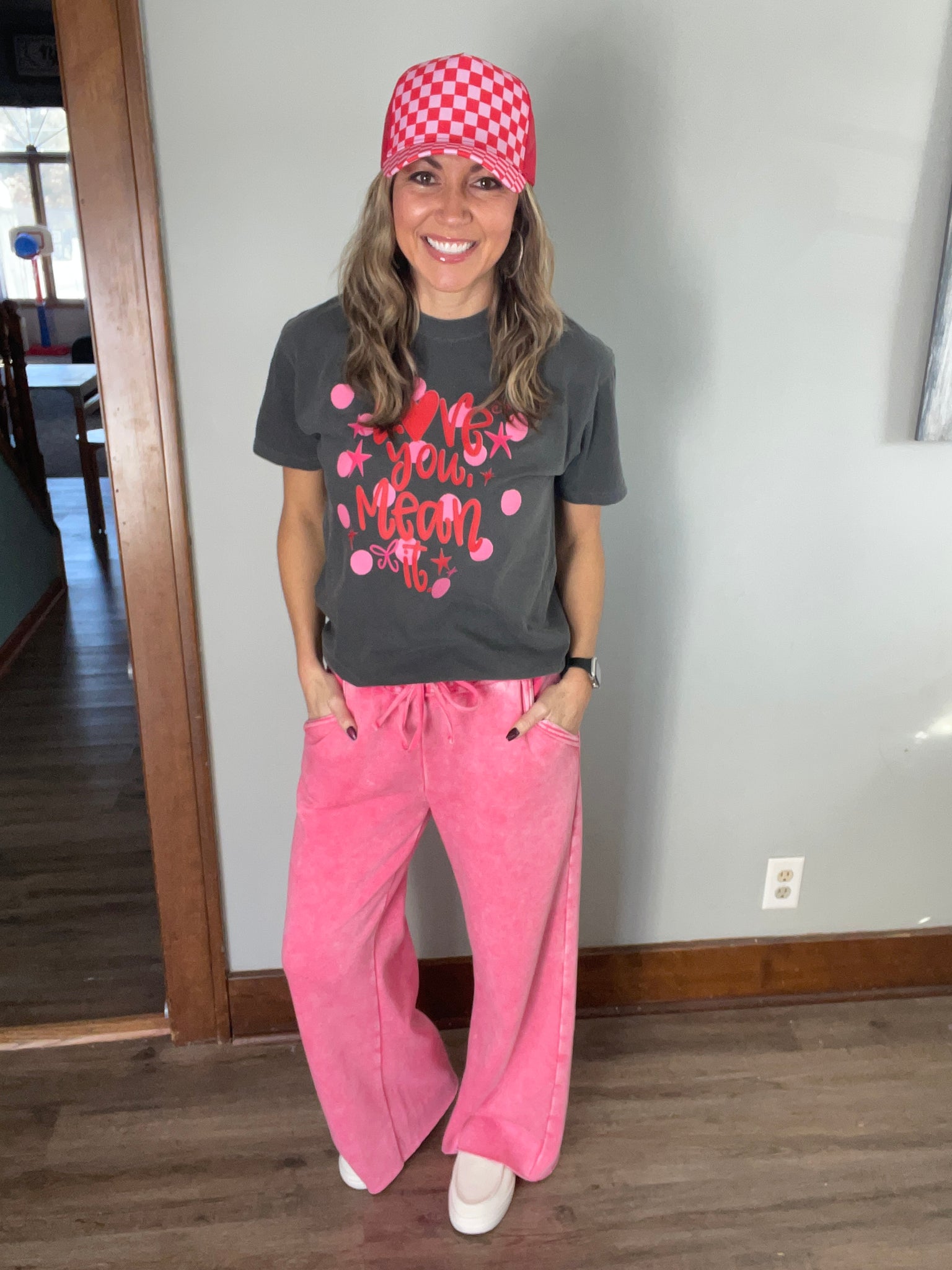 This sweet and cozy graphic tee is all about spreading the love 💕 Featuring a bold pink heart design with playful lettering, this tee is the perfect mix of comfy and cute. Made with a soft, lightweight fabric you’ll want to live in, it pairs effortlessly with joggers, jeans, or layered under a jacket for an easy everyday look.