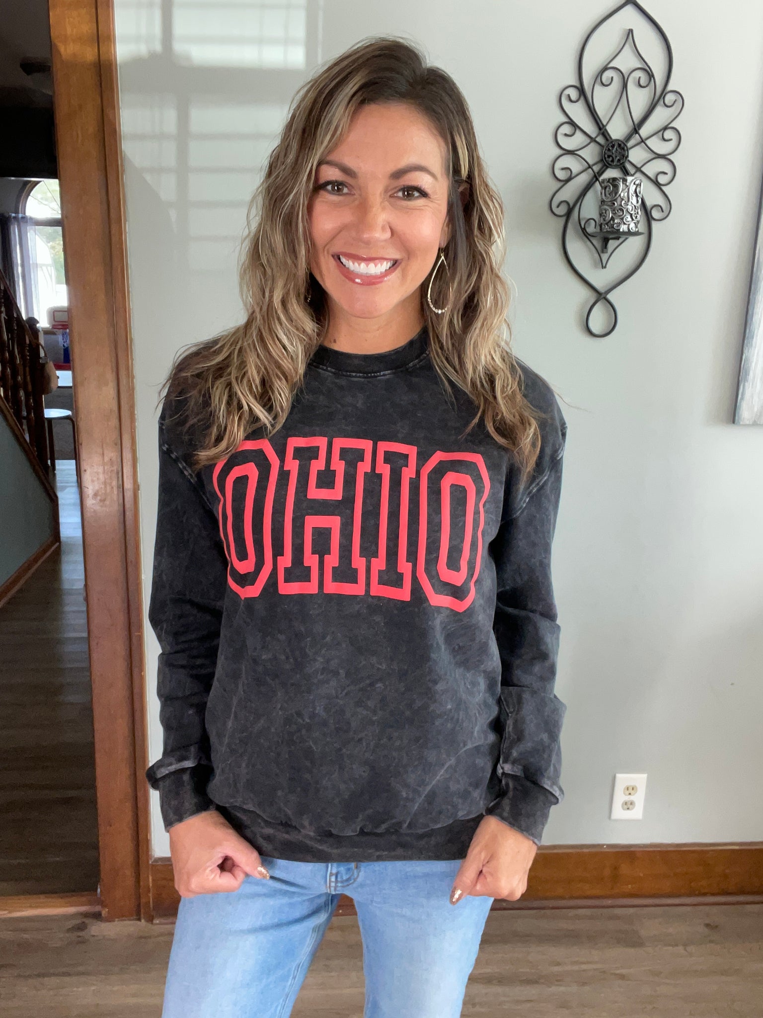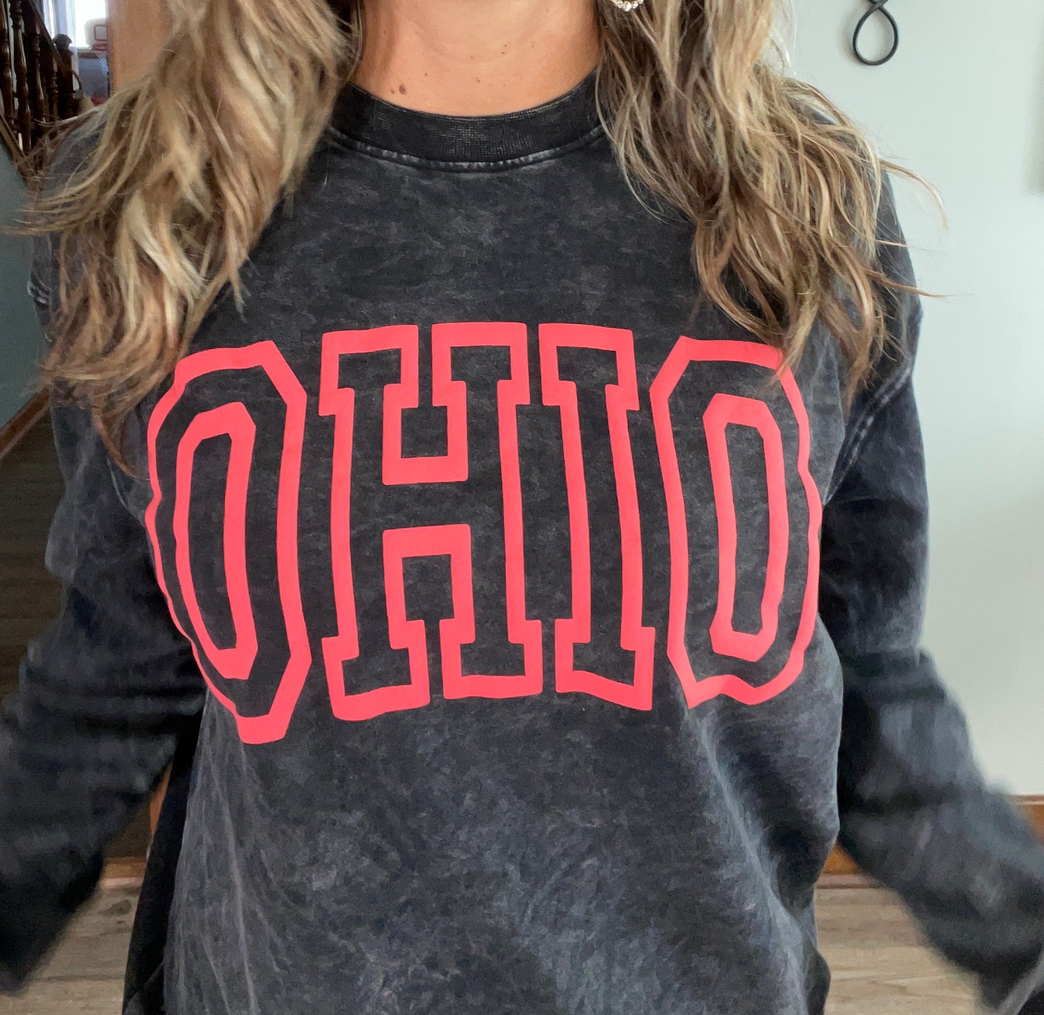 Show your Buckeye pride in style with this ultra-comfortable Ohio crewneck! Featuring a bold red OHIO red puff across the chest and a trendy vintage-washed black finish, this sweatshirt is the perfect mix of casual, cozy, and game-day ready.