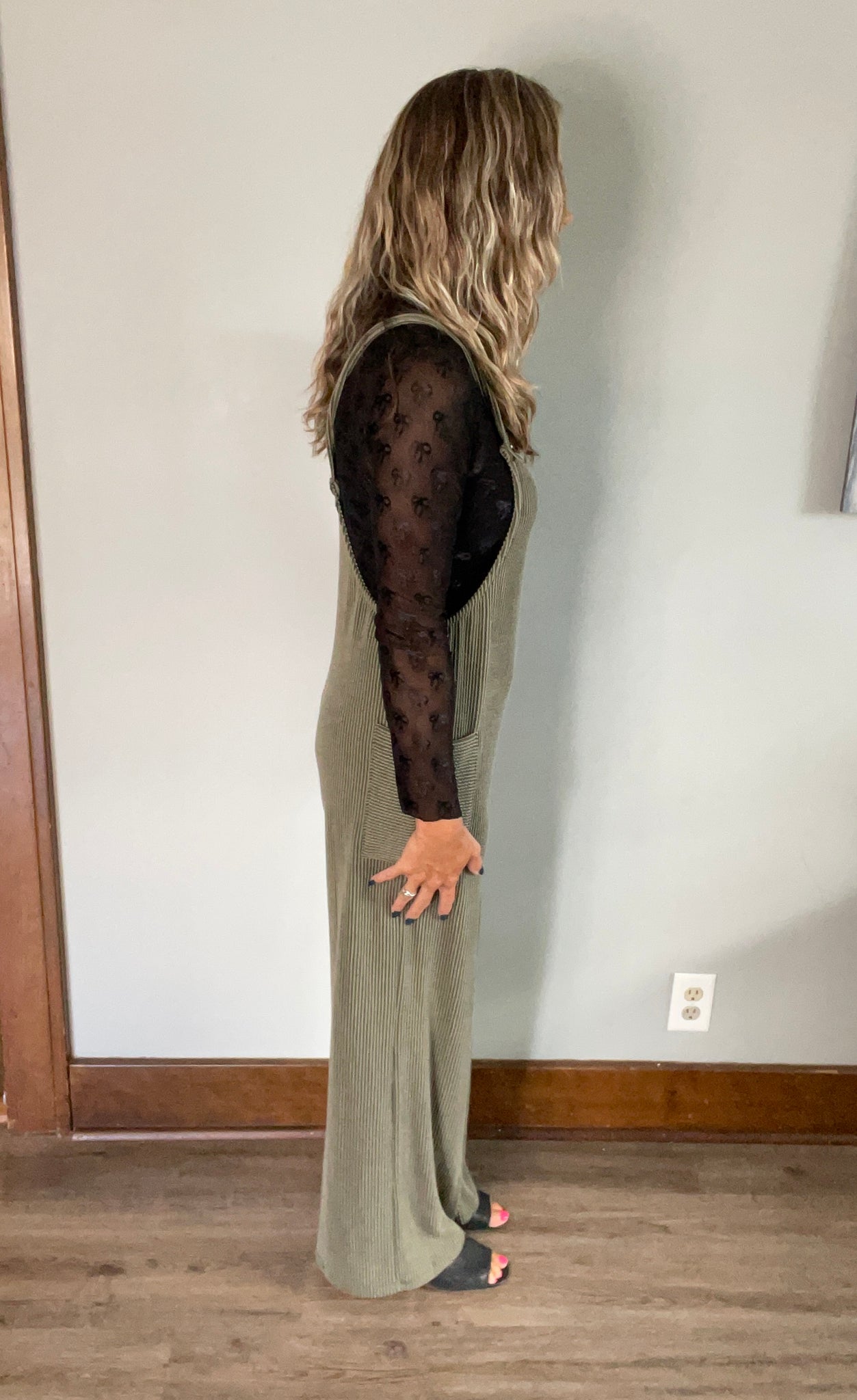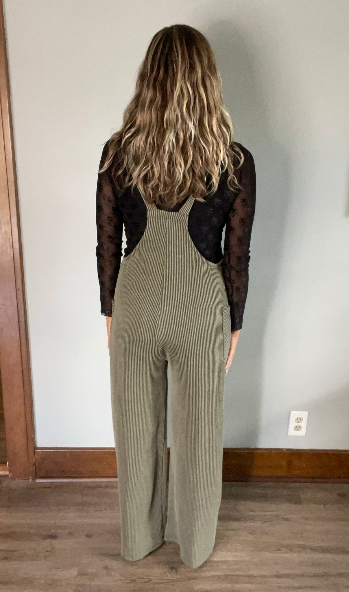 Easy, relaxed, and oh-so-stylish—this ribbed overall jumpsuit is the perfect blend of comfort and chic. The olive hue gives it a trendy, fall-ready vibe, while the wide-leg fit and ribbed texture keep it casual and flattering. Adjustable straps with button details and roomy pockets make it as practical as it is cute!