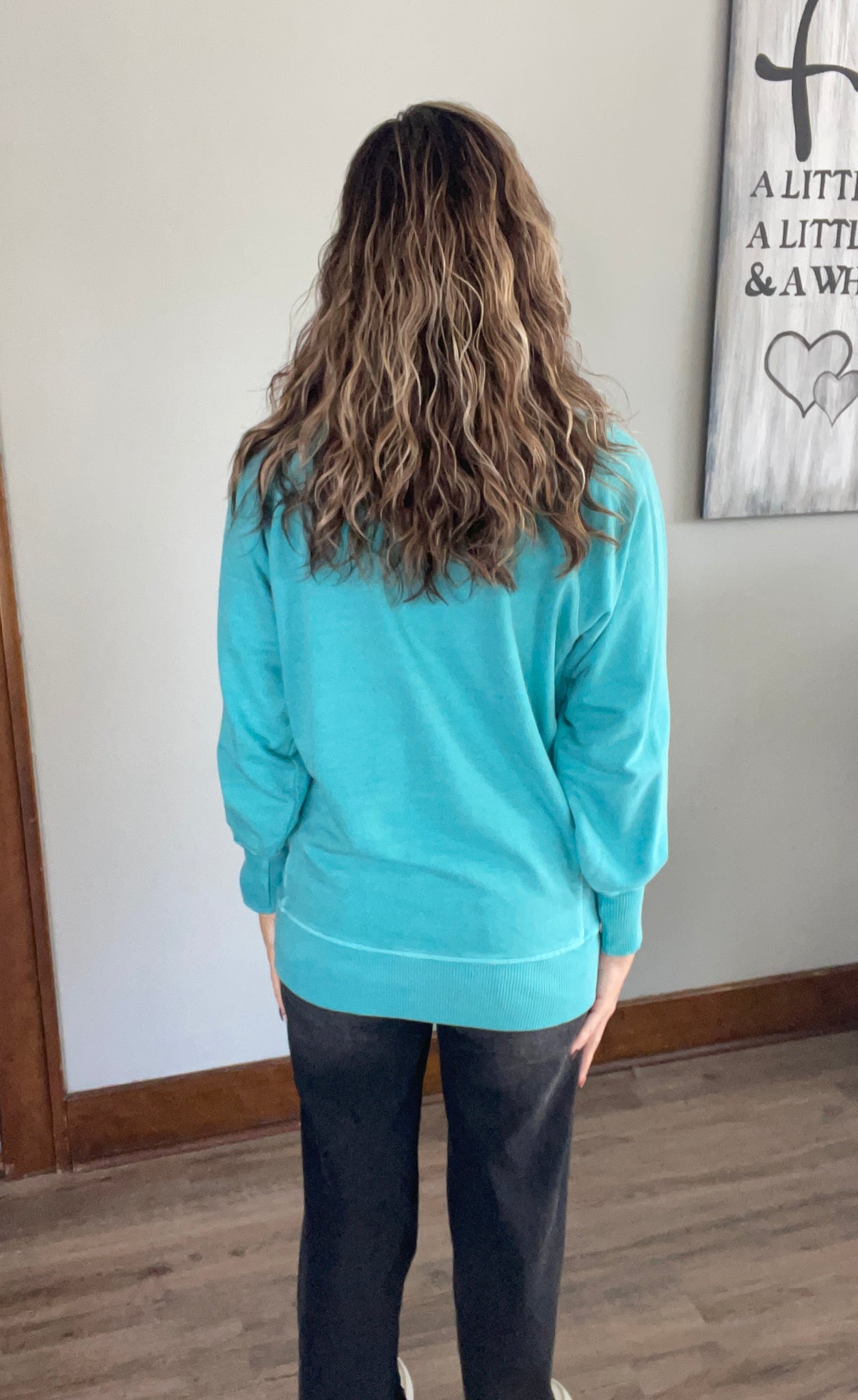 Add a pop of color to your comfy wardrobe with this gorgeous turquoise crewneck pullover! Soft, slouchy, and effortlessly cute, this one is perfect for everyday wear — whether you’re running errands, lounging at home, or layering up for chilly weather.